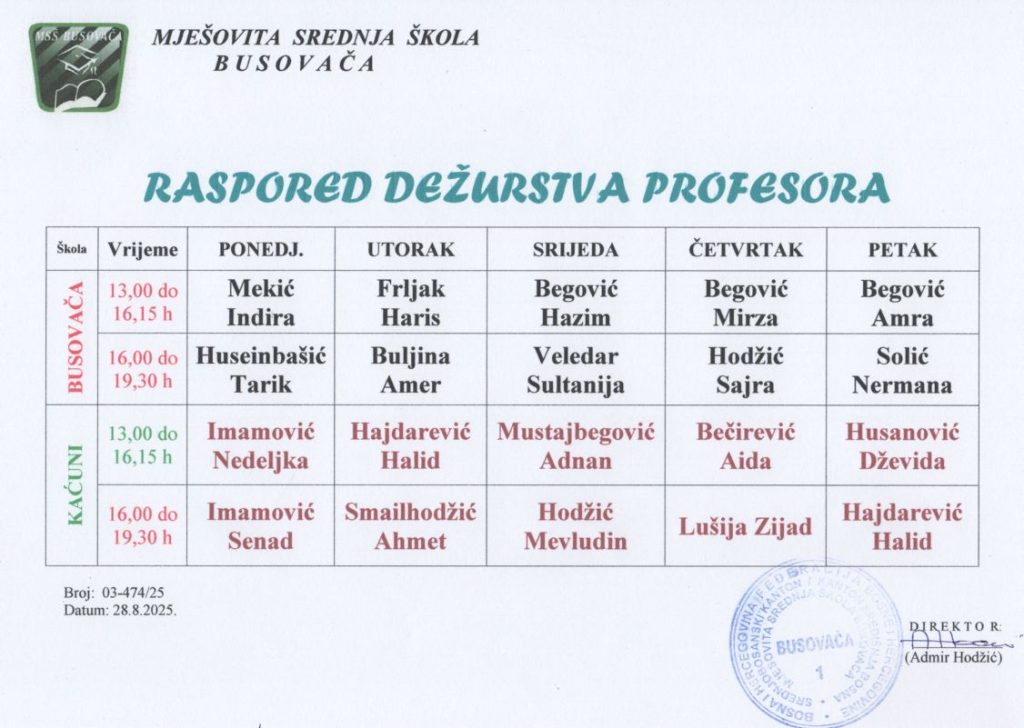Raspored dežurstva